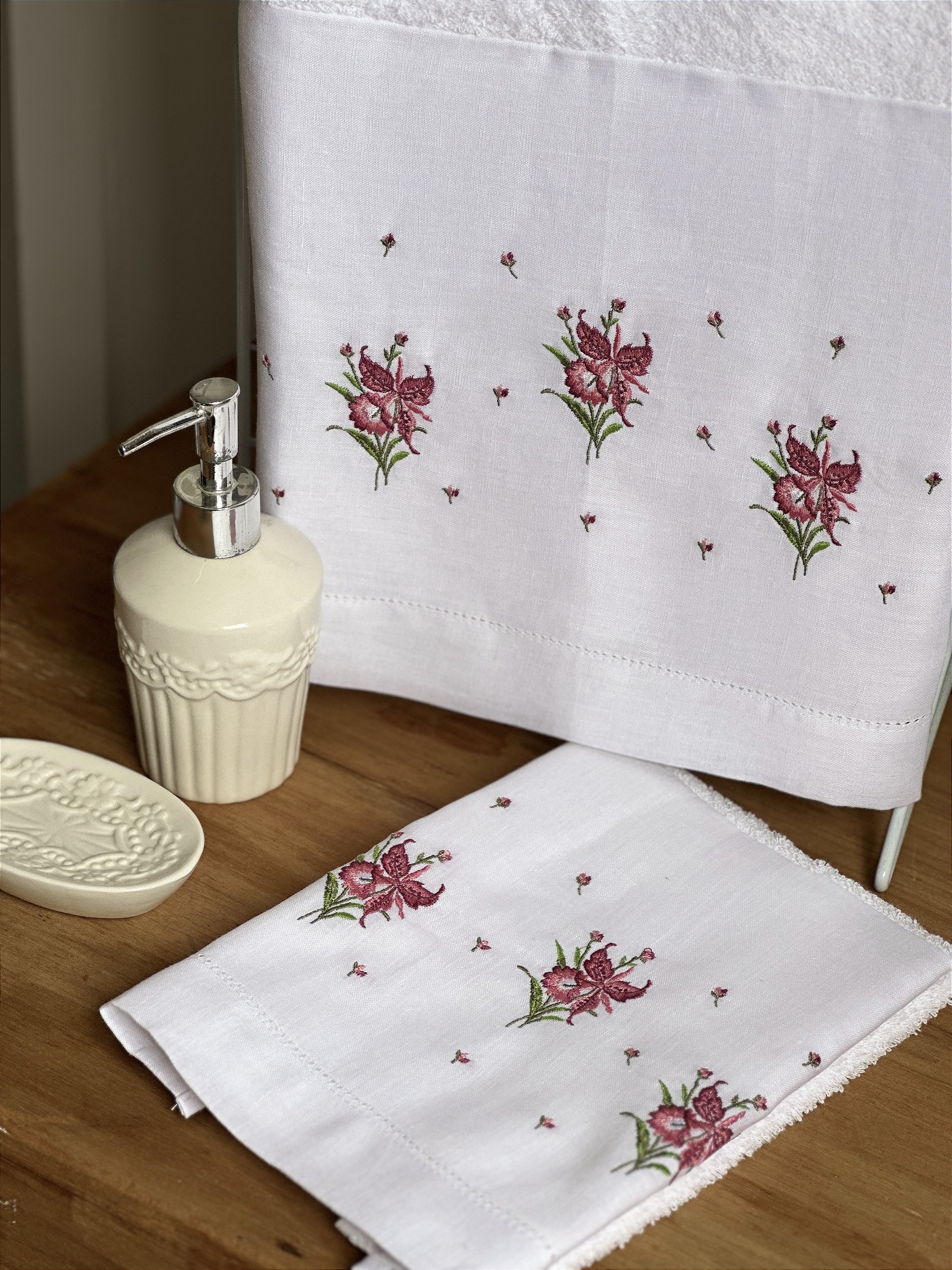 CONJUNTO TOALHA DE MÃO E ROSTO BUQUÊ FLORES ROSAS