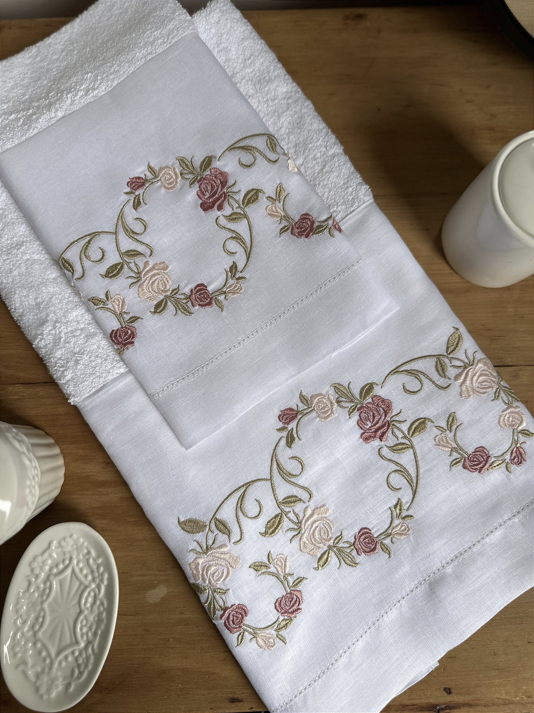 CONJUNTO TOALHA DE MÃO E ROSTO GUIRLANDA ROSAS