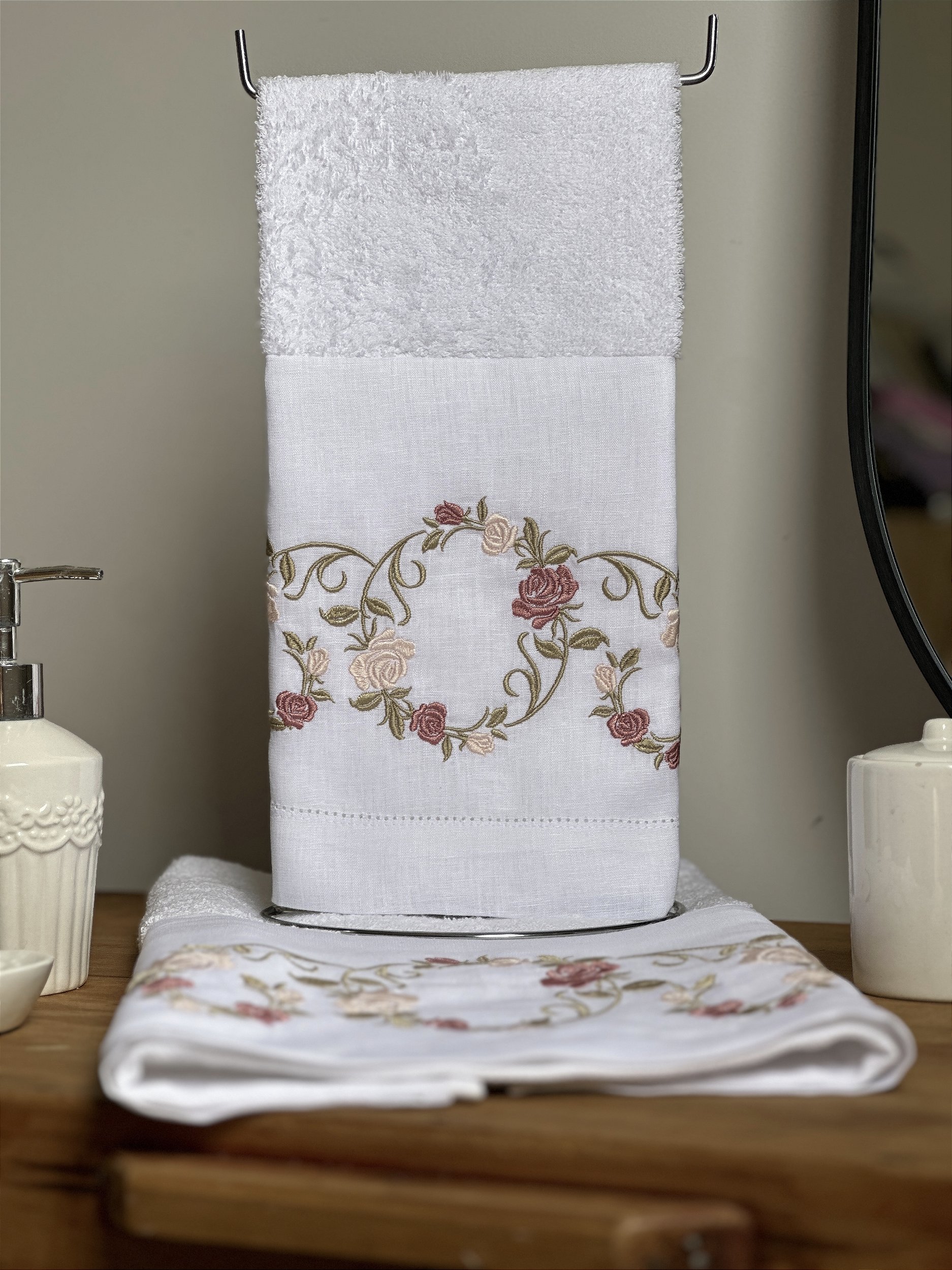 TOALHA DE MÃO GUIRLANDA ROSAS